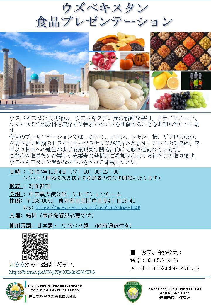京都府北部の日本海側に位置する舞鶴市には,戦後13年間に亘り,中国大陸やシベリアからの引揚者を受け入れる引揚港としての役割を果たしてきた歴史があります。その中で,特にウズベキスタンに抑留された日本人の多くが舞鶴港に引き揚げられたという縁からウズベキスタンとの交流が始まり,その交流の分野は現在も拡がり続けています。