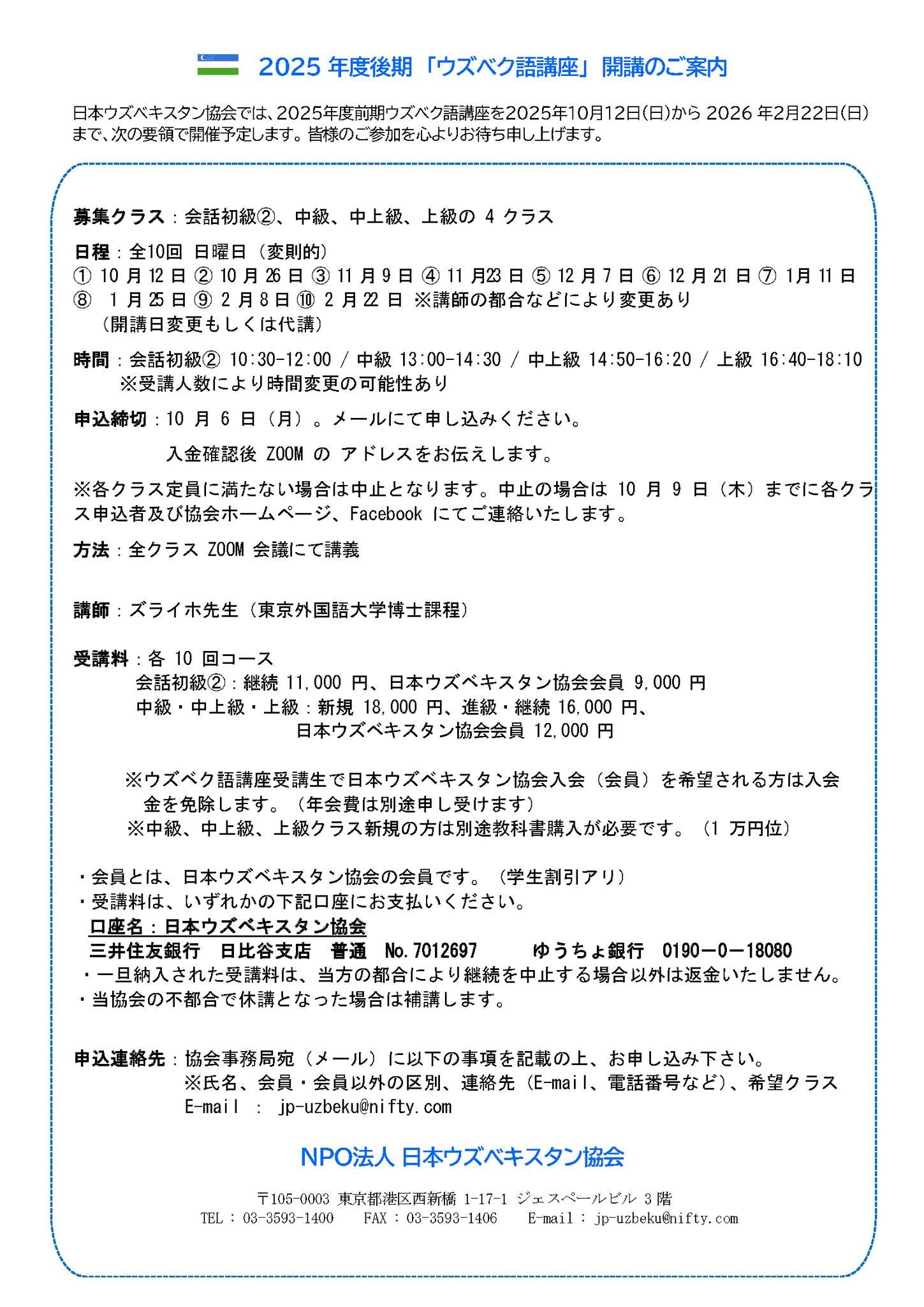 こうした舞鶴市の取り組みを知り,最近,有難いことに,ふるさと納税をウズベキスタンとの交流事業に活用してほしいという声をいただいていることから,先ずはNoriko学級で学びながらも経済的に困難な学生の人材育成のために,この貴重な財源を充てることとし,全国の方々に向け広く寄付を募ることといたしました。早速ではございますが,パンフレットを作成いたしましたので,ご一読いただき,皆様方のご理解・ご協力を賜れれば幸甚でございます。